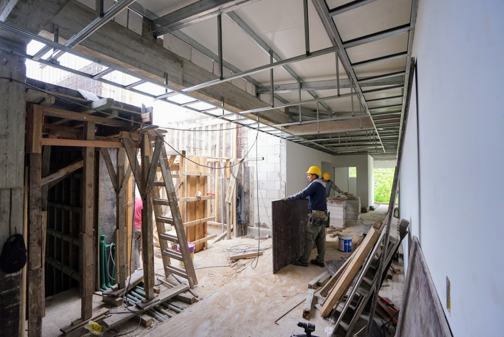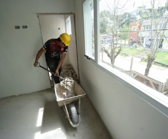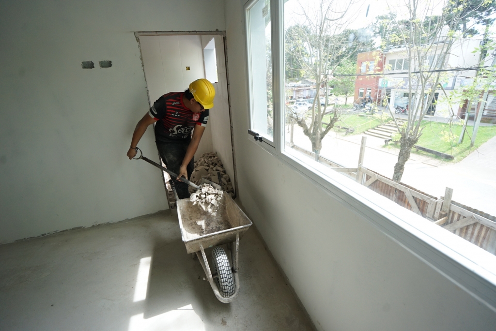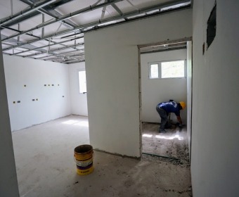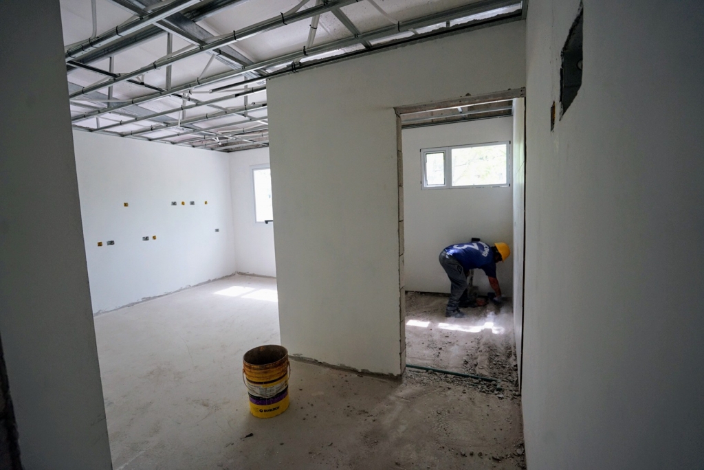 Ya se colocó el porcelanato en los pisos, se avanza con los trabajos de durlock en los techos, enduido y pintura de paredes, y la instalación de gases medicinales en las salas superiores. En los próximos días se prevé la colocación de ventanas en un sector de la planta baja.