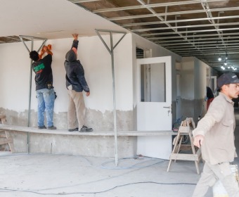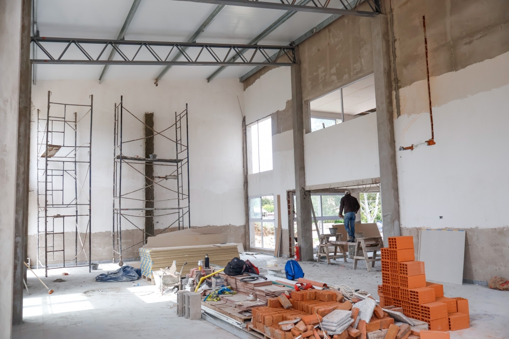 El presidente del Consejo Escolar, Manuel Artieda, brindó detalles sobre los últimos avances y explicó que las aberturas interiores ya fueron colocadas, mientras que las exteriores, junto con sus correspondientes vidrios, presentan un avance del 90%. Además, se colocaron los pisos de mosaico y comenzó el proceso de pulido, en paralelo con la instalación de 16 aires acondicionados y la construcción del cielorraso en aulas y pasillos. También se avanza con el paredón perimetral, destinado a contener el médano en la zona del patio.