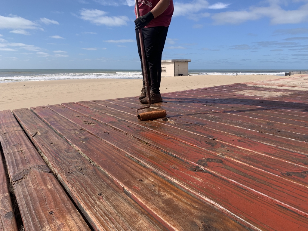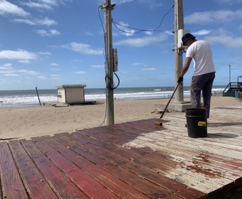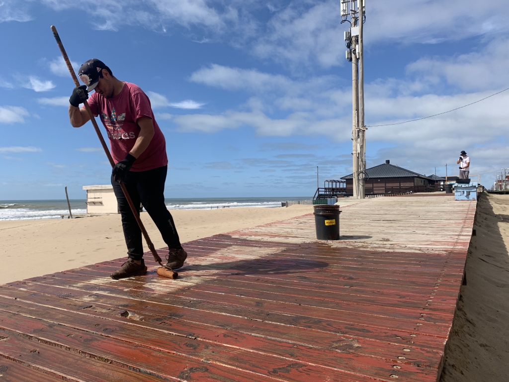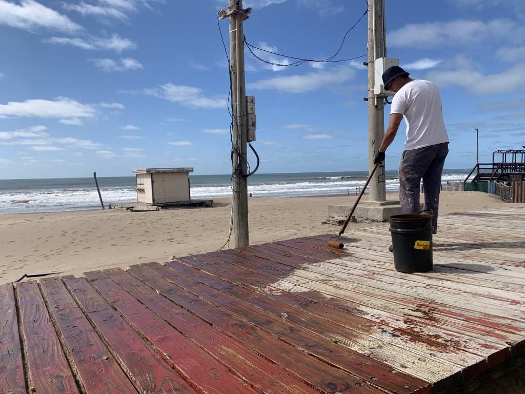 La Dirección de Playas, a cargo de Alejandro Fresone, continúa con las tareas de pintura y mantenimiento sobre la rambla costera. Los trabajos ya se completaron en los tramos comprendidos entre calle 303 y Paseo 109, y entre Paseo 129 (Muelle) y 123.