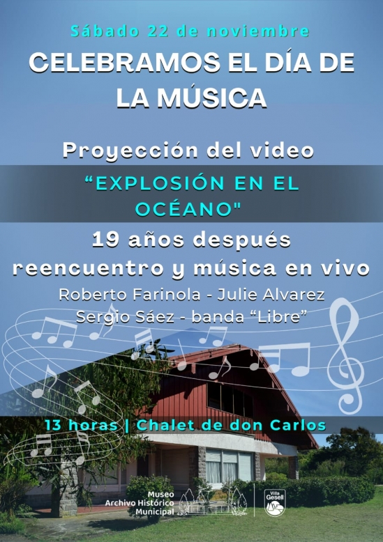 🎬 Proyectaremos el documental "Explosión en el océano" y dialogaremos con sus protagonistas que, 19 años después, se reencuentran para seguir escribiendo la historia de la música geselina con una presentación especial en los jardines del Chalet De Don Carlos 🎼🎤