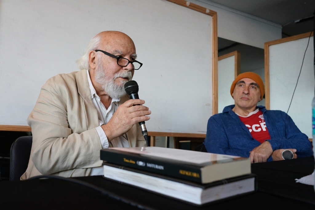 La actividad, libre y gratuita, contó con la participación de Guillermo Saccomano y del dibujante REP, quienes acompañaron a Sasturain en una conversación abierta sobre la novela y su proceso de escritura.