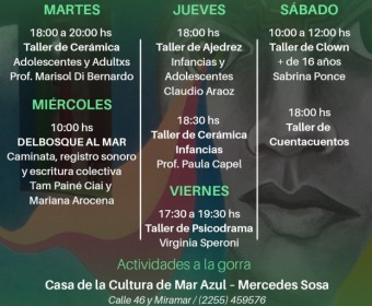 En caso de lluvia, las actividades se trasladarán a la Casa de la Cultura de Mar Azul “Mercedes Sosa”.