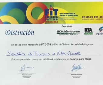 La Secretaría de Turismo fue distinguida por la Red de Turismo Accesible, así como también Marcelo Santurión, presidente de la Cámara de Concesionarios de Playa, en la reciente Feria Internacional de Turismo de América Latina (FIT), en la cual lograron que el Programa Nacional de Calidad, llegue con las certificaciones que buscan, como lo explicó el Emiliano Felice “la estandarización en la prestación de servicios y el cuidado de la playa”, algo que el Secretario perteneciente al gabinete de Barrera, ve con mucho optimismo ya que se está trabajando fuertemente junto a todos los actores intervinientes en la industria del turismo geselino.