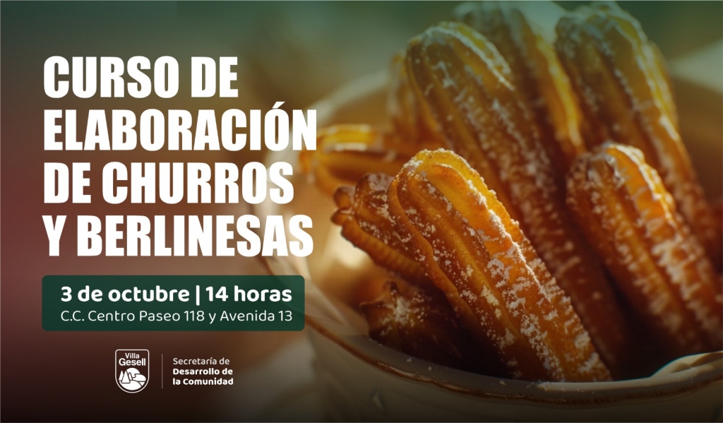 En el marco de los talleres de Autonomía Alimentaria, la Secretaría de Desarrollo de la Comunidad, a cargo de Javier Vicente, invita a participar de un nuevo curso de elaboración de churros y berlinesas. La propuesta comenzará el 3 de octubre y se dictará en el Centro Comunitario Centro, ubicado en Paseo 118 y Avenida 13.