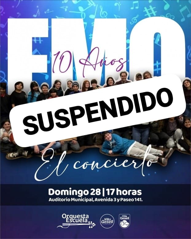 Se informa a la comunidad que el recital programado para el domingo 27 en el Auditorio de la Casa de la Cultura queda suspendido por razones de fuerza mayor.