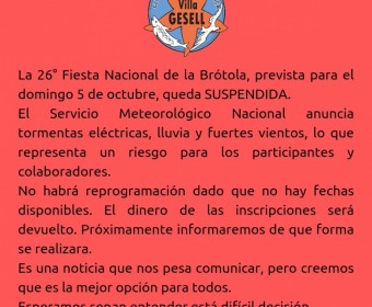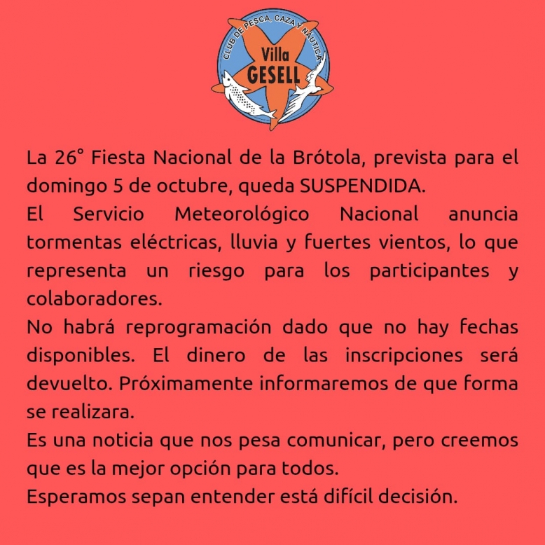 El Club de Pesca, Caza y Naútica informó la suspensión del evento a través de un comunicado.