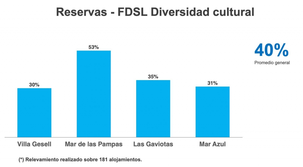 De acuerdo al relevamiento, y siendo lunes 6 de octubre, Villa Gesell registra un 30% de reservas, Mar de las Pampas un 53%, Las Gaviotas un 35% y Mar Azul un 31%, alcanzando así un promedio general del 40% entre todas las localidades.