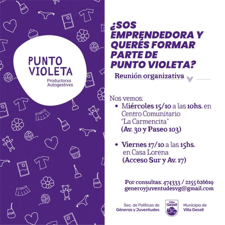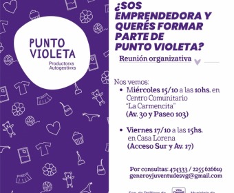 La Secretaría de Políticas de Género y Juventudes convoca a emprendedoras y productoras autogestivas locales que quieran participar de la Feria Punto Violeta