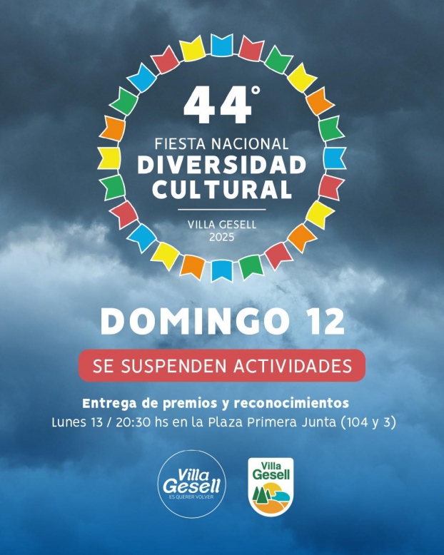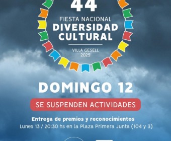 POR CUESTIONES CLIMÁTICAS, SE SUSPENDE LA CUARTA Y ÚLTIMA JORNADA DE LA FIESTA DE LA DIVERSIDAD CULTURAL