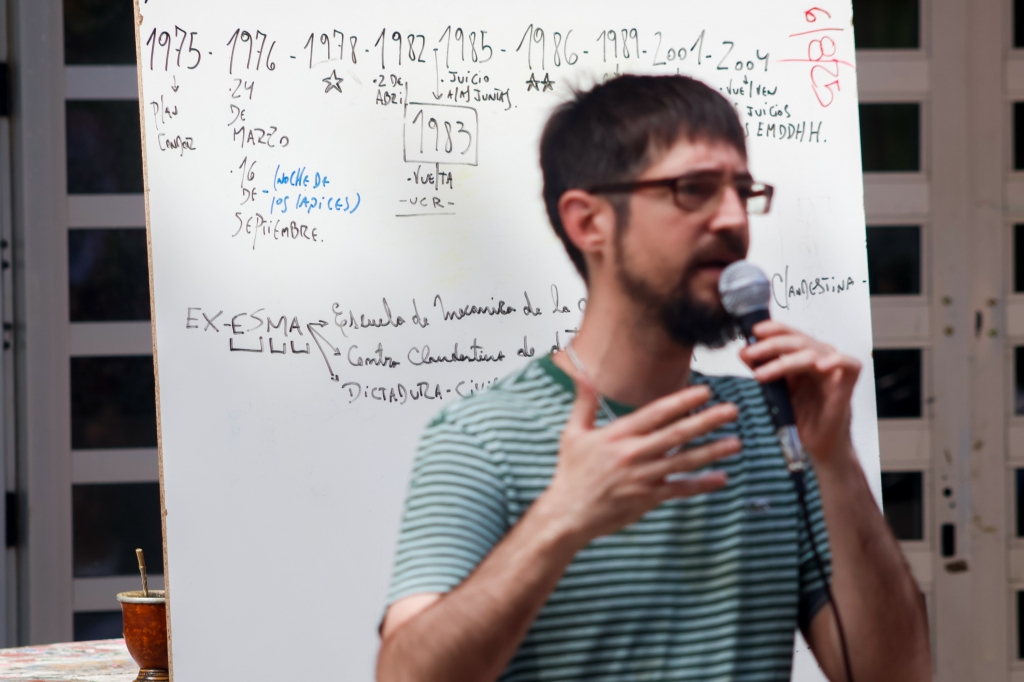 El taller es dictado por Gabriel Salomón y Franco Delprino del Espacio de la Memoria y Derechos Humanos ex ESMA y ya se llevó adelante en las Secundarias N° 1 y N° 4 así como en comisiones del Plan FinEs, con gran recepción de las y los estudiantes.
