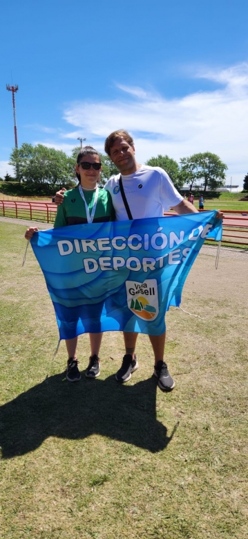Sofía Mastrandrea volvió a subirse a un podio de los @juegos.bonaerenses 💫. La atleta geselina conquistó la medalla de plata 🥈 en lanzamiento de disco categoría sub-18 femenino y nuevamente trajo una presea para la ciudad 👏🏼