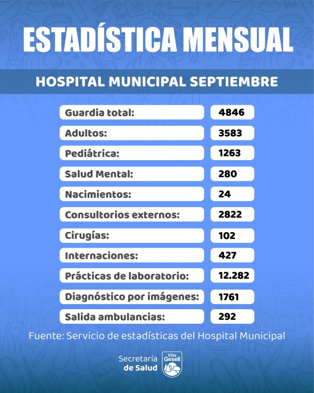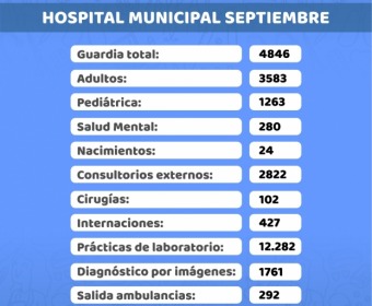 A través del Servicio de Estadísticas del Hospital Municipal, la Secretaría de Salud elaboró un informe sobre la cantidad de pacientes atendidos y los servicios brindados durante el mes de septiembre.