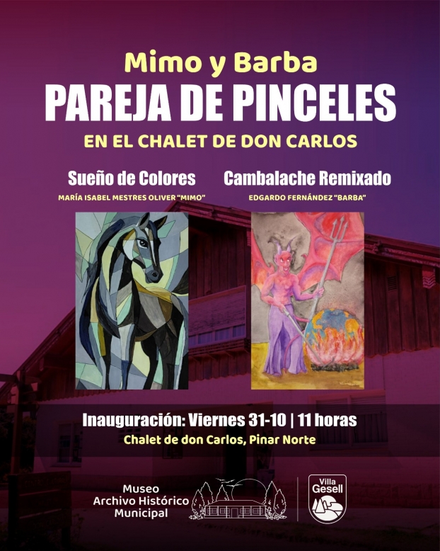 El Museo y Archivo Histórico invita a la inauguración de una nueva muestra en el Chalet de Don Carlos. En esta oportunidad se presentarán “Sueño de Colores” y “Cambalache Remixado”, de María Isabel Mestres Oliver (“Mimo”) y Edgardo Fernández (“Barba”).