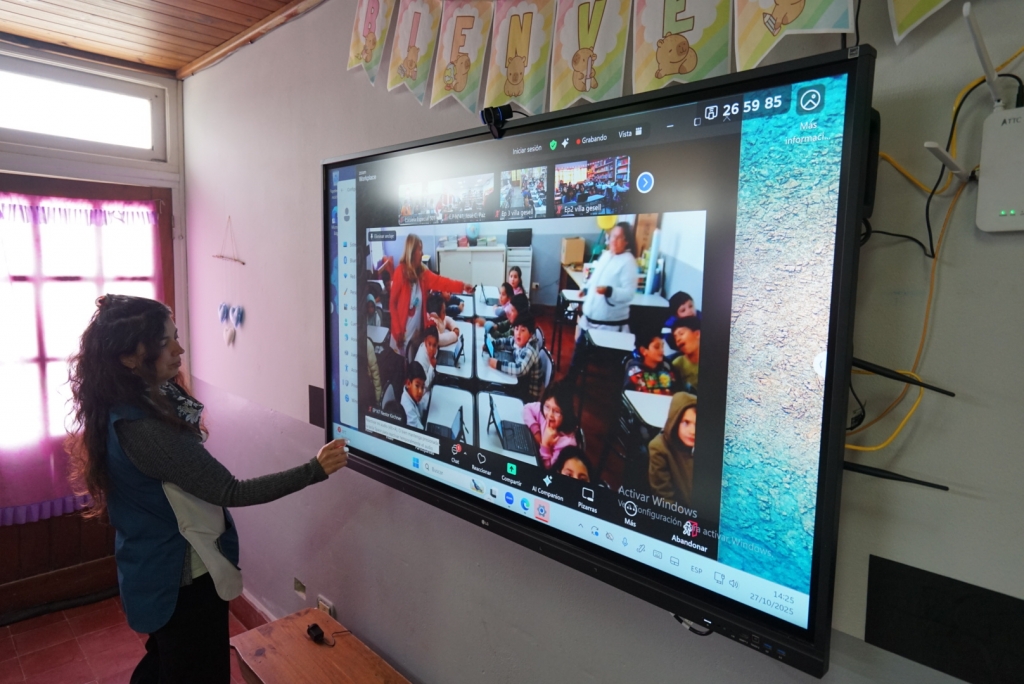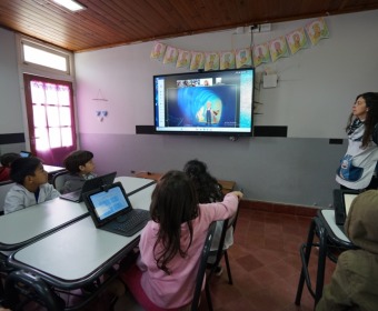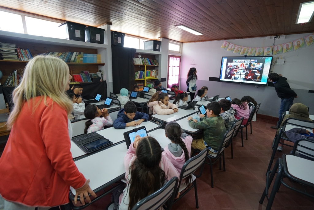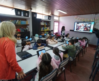 Ayer, la Escuela Primaria N°7 realizó una conexión con estudiantes de distintos puntos de la provincia para desarrollar una actividad educativa conjunta. La directora de la institución, Cecilia Conde, explicó que participaron las y los alumnos de segundo grado, y que todos los cursos están muy entusiasmados con esta herramienta que se utiliza de forma permanente y los motiva a seguir aprendiendo con nuevas tecnologías.