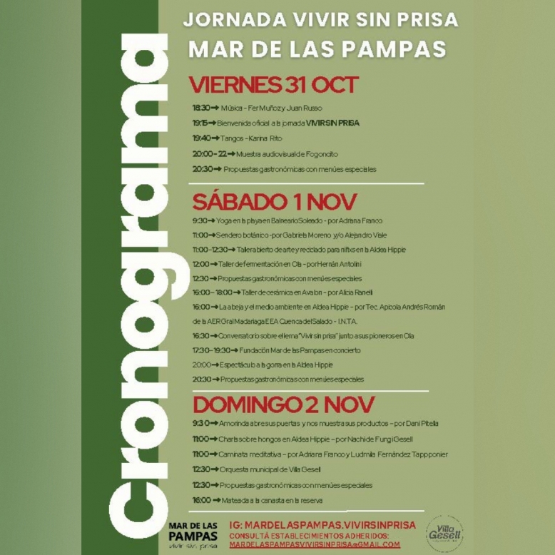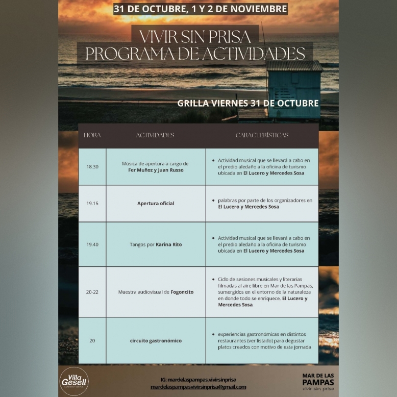 Para celebrar y visibilizar este concepto, se llevará a cabo el fin de semana “Vivir Sin Prisa”, desde el viernes 31 de octubre hasta el domingo 2 de noviembre, con diversas actividades culturales, musicales y gastronómicas.