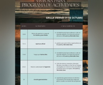 El evento comenzará el viernes 31 de octubre a las 18:30 h en la Oficina de Información Turística (El Lucero y Mercedes Sosa), con música en vivo a cargo de Fer Muñoz y Juan Russo, seguida de la apertura oficial, un espectáculo de tangos por Karina Rito, experiencias gastronómicas y una muestra audiovisual de Fogoncito.