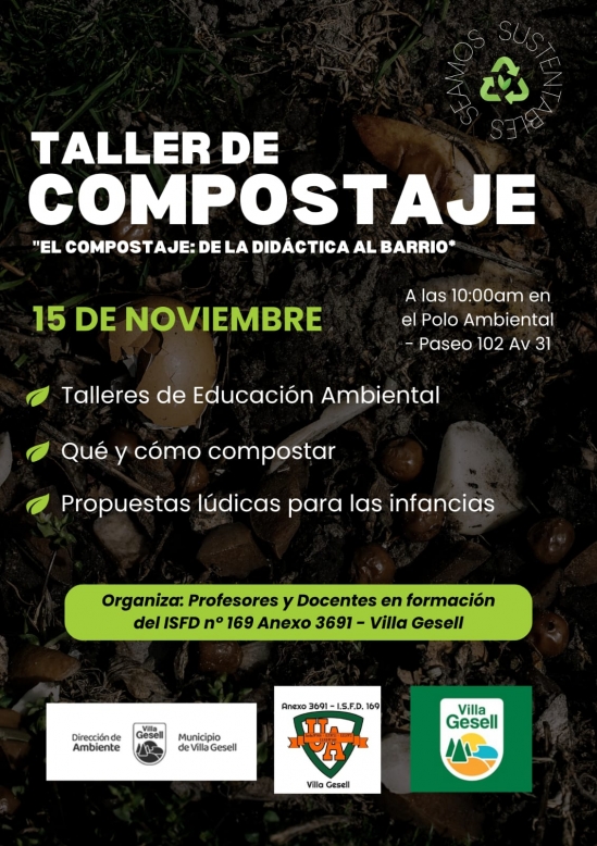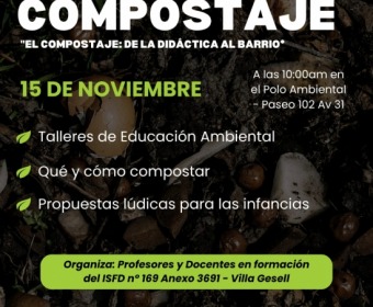El próximo 15 de noviembre a las 10:00 h, se realizará un Taller de Compostaje en el Polo Ambiental (Paseo 102 y Avenida 31), en el marco del proyecto de extensión “Compostaje: de la Didáctica Alvarado”, perteneciente a la cátedra Taller de Ciencias Naturales, a cargo del profesor Matías E. Benavidez.