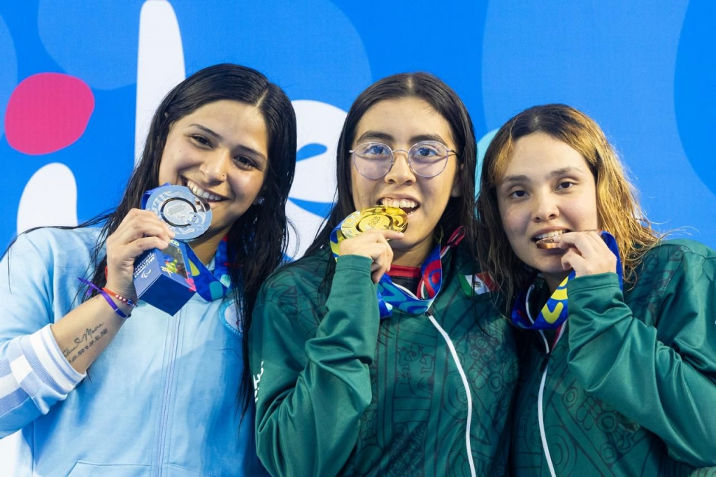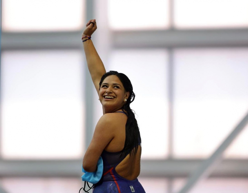 En los 100 metros mariposa la atleta de geselina compartió el podio con las nadadoras mexicanas Diana Torres, ganadora del oro, y Karen Morales, quien conquisto la de bronce.