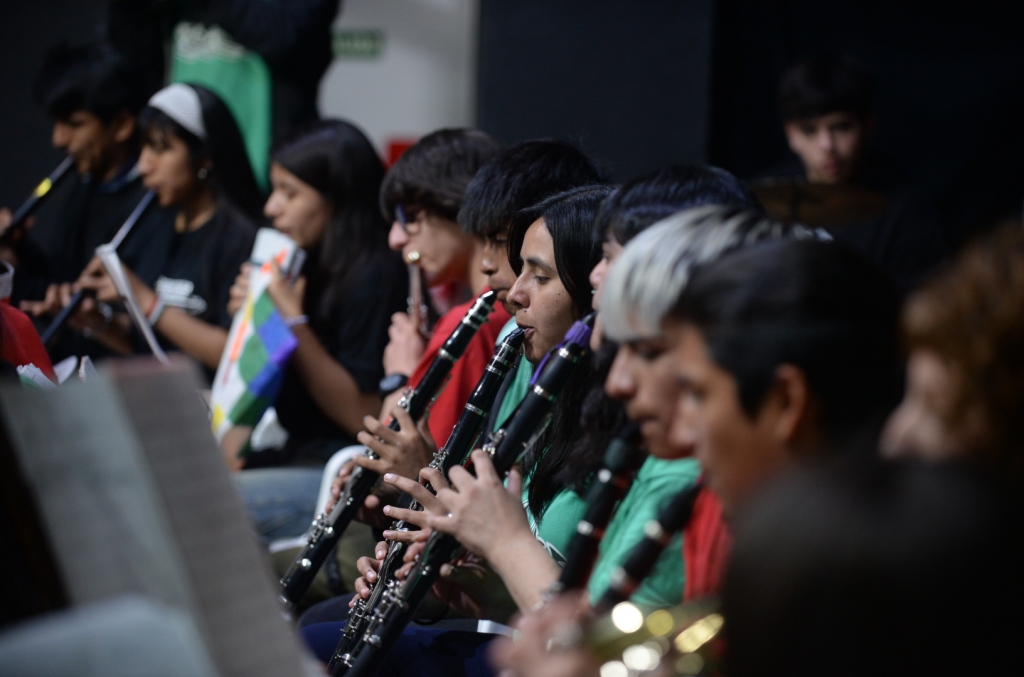 El sábado, los ensayos comenzaron a las 14:00 h y, a partir de las 17:00 h, las orquestas se presentaron en el Teatro San Martín, donde interpretaron repertorios individuales y conjuntos que abarcaban distintos géneros musicales, brindando una tarde colmada de talento, emoción y compañerismo.