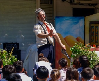 La compañía de teatro de Mar Azul “Sonidos en la arena” fue la encargada de llevar adelante el show. El grupo trabajó junto a las guías en la elaboración del relato y, desde hace dos años, realiza presentaciones en museos, escuelas y fiestas populares. En esta edición, se sumaron a las visitas educativas del nivel primario, brindando una experiencia enriquecedora para las infancias.
