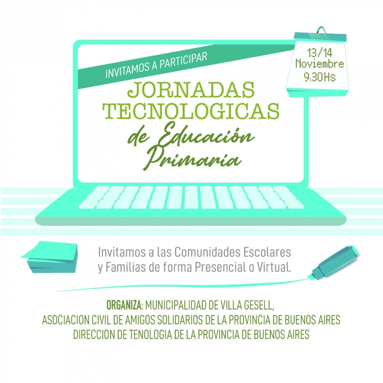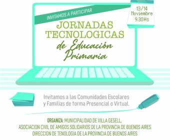 En el marco de la iniciativa “Inclusión del plan sin brech@ en la educación pública”, la Asociación de Amigos Solidarios de la Provincia de Buenos Aires, junto a la Municipalidad de Villa Gesell y la Dirección de Tecnología de la Provincia de Buenos Aires, invitan a la comunidad educativa y a las familias geselinas a participar de las Jornadas Tecnológicas de Educación Primaria, que se desarrollarán este jueves y viernes de 9 a 12 hs y de 14 a 16:30 hs en el Hotel Intersur (Paseo 111 y Costanera).