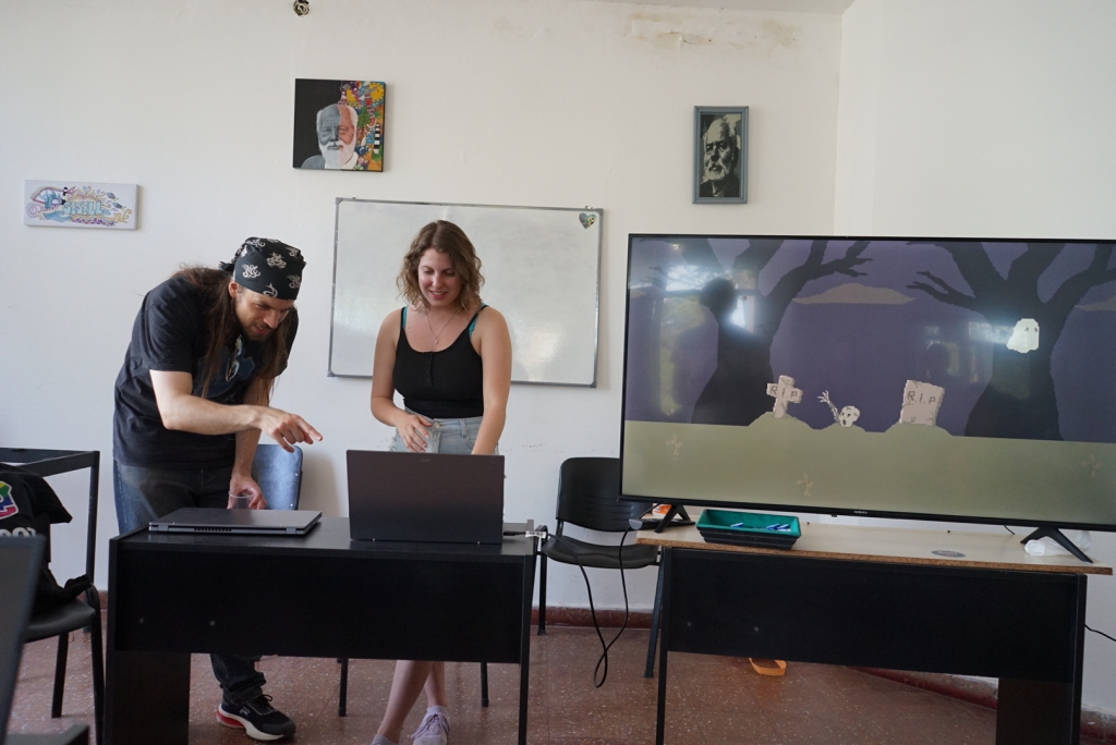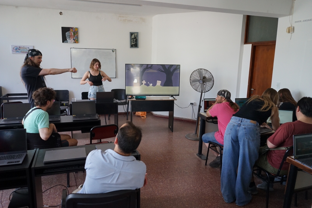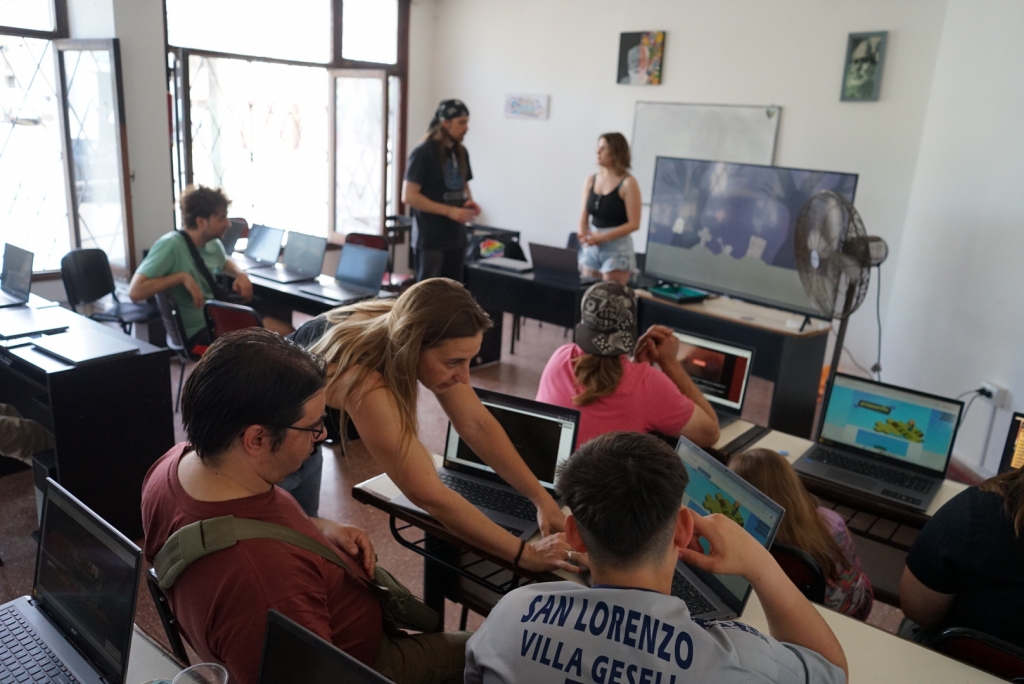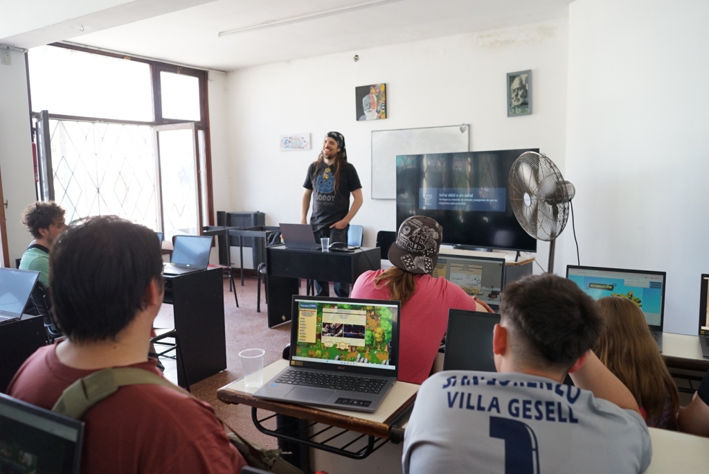 El director de Educación explicó que otro de los objetivos fue avanzar en la creación de una comunidad local entre desarrolladores y entusiastas de los videojuegos: “Pusimos el espacio y las computadoras a disposición, y ellos se contactaron con nuestra Dirección para comenzar a construir esta comunidad. Compartimos más de tres horas de juego, desarrollo y exploración de las distintas herramientas de código abierto, como GODOT, que permiten crear nuestro propio videojuego y vincular a personas con intereses musicales, artísticos y no solo de programación”.
