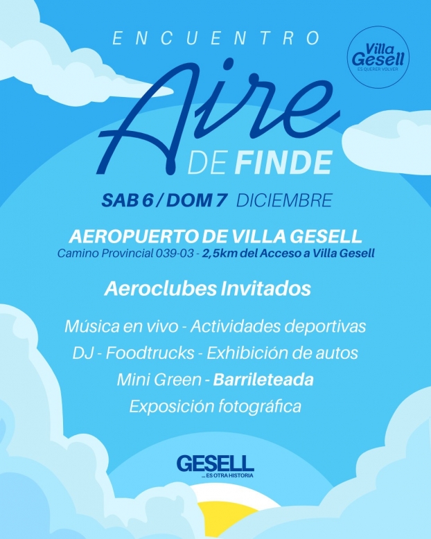 La ciudad de Villa Gesell se prepara para un fin de semana histórico. La Secretaría de Turismo, Cultura y Deportes ha organizado el evento "AIRE DE FINDE" para celebrar por partida doble: el 50° Aniversario del primer vuelo que llegó al aeropuerto de nuestra ciudad en 1975 y el reciente acuerdo que permitirá el retorno de los vuelos comerciales a partir de noviembre de 2025.