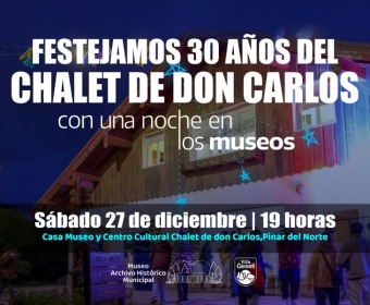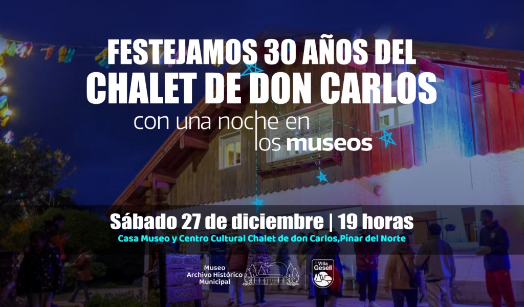 El Museo y Archivo Histórico celebrará los 30 años del Chalet de Don Carlos como museo y centro cultural con una nueva edición de La Noche de los Museos, una propuesta pensada para compartir música, recuerdos y continuar celebrando la historia y la identidad geselina. La actividad se realizará el sábado 27 de diciembre, de 16 a 22 h, con apertura oficial a las 19:00 h.
