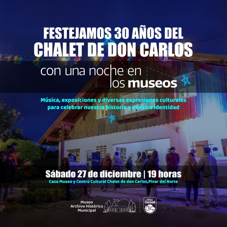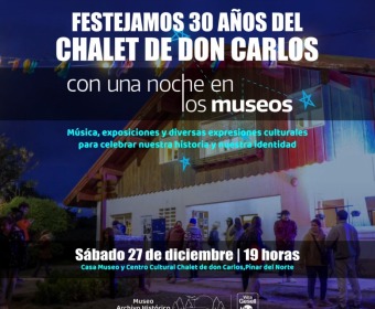 Celebración de los 30 años del Chalet de Don Carlos como museo y centro cultural: de 16:00 a 22:00 h, con exposiciones y música en vivo. Entrada libre y gratuita. Chalet de Don Carlos, Pinar del Norte.
