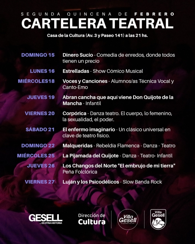 Se trata de una fuerte apuesta impulsada por la Dirección de Cultura, dependiente de la Secretaría de Turismo, Cultura, Educación y Deportes de Villa Gesell, que tiene como objetivo brindar a turistas y residentes un amplio abanico artístico durante la temporada estival.