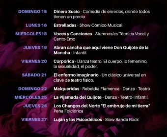 Con más de 40 obras de teatro y espectáculos musicales en escena, la Casa de la Cultura y el Auditorio Municipal ofrecerán funciones diarias, con la participación de artistas locales y de distintos puntos del país.