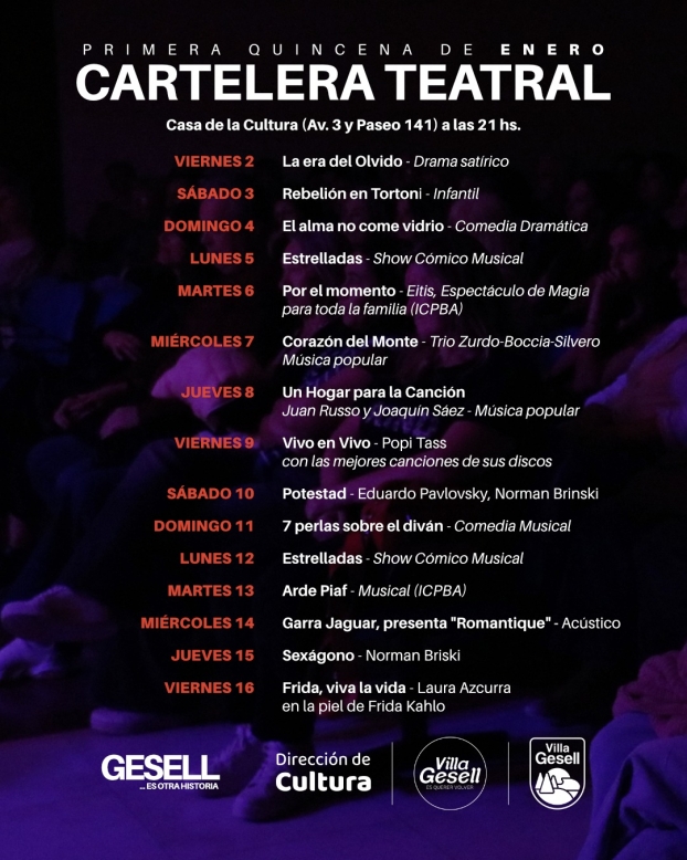 La Casa de la Cultura de la Municipalidad te espera con una amplia oferta de espectáculos y obras de distintos géneros, pensadas para todas las edades. Además, el Polo Cultural Sur vuelve a llenarse de color, artesanías, sabores y música en las tardes y noches de verano.
