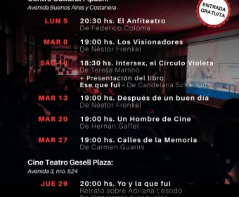 19:00 h: Calles de la Memoria-De Carmen Guarini en el Cine Teatro Gesell Plaza: Avenida 3 nro. 524.