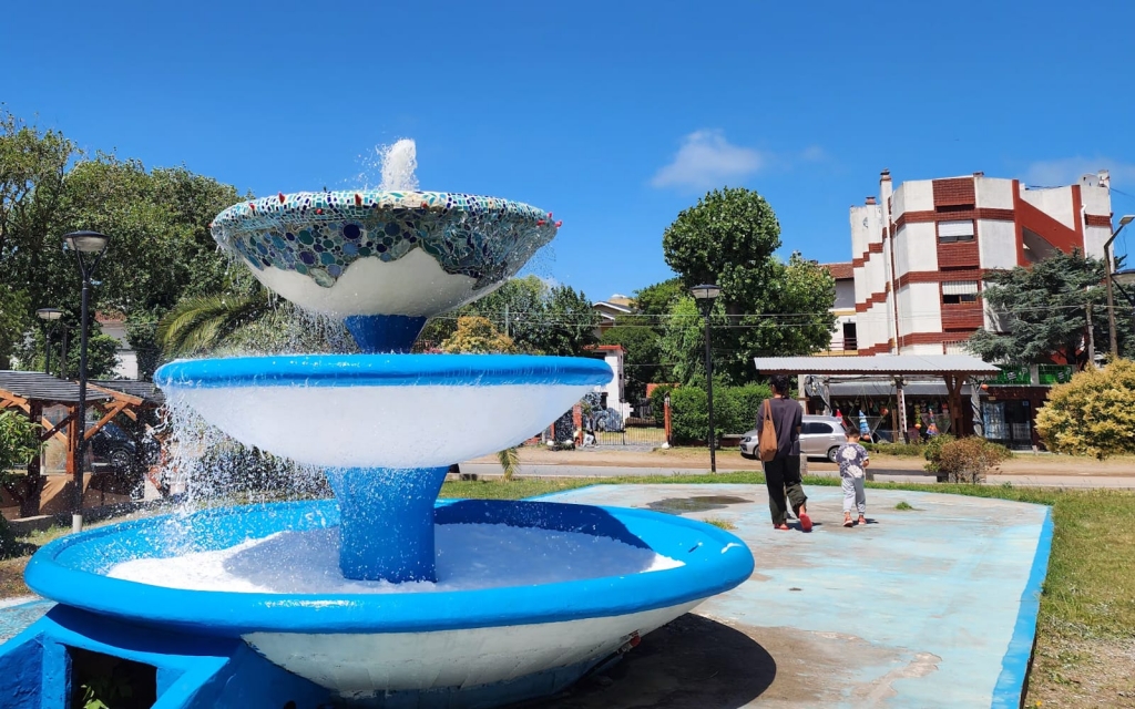 Con la reparación, pintado y puesta en funcionamiento de la fuente emplazada en la Plaza de la Américas, finalizaron los trabajos de mejoramiento integral de ese espacio público, hacia el sur de la ciudad.
