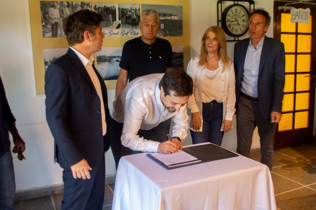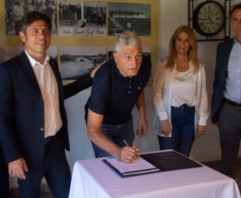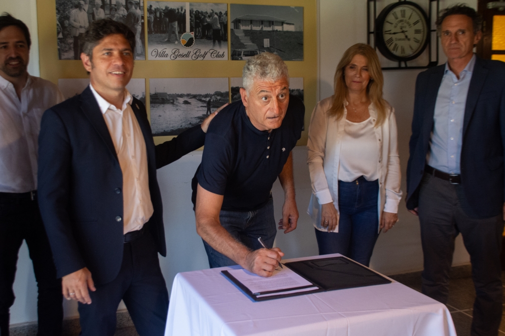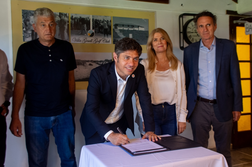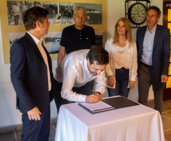 El intendente municipal, Gustavo Barrera, recibió al gobernador de la provincia de Buenos Aires, Axel Kicillof, en las instalaciones del Golf Club Villa Gesell, en el marco de una nueva edición de las Conferencias de Verano impulsadas por el Ejecutivo Provincial.