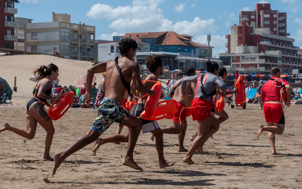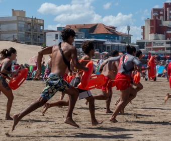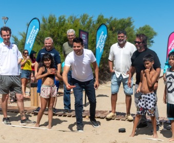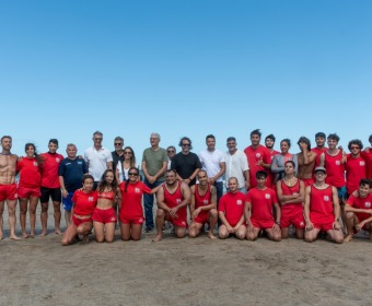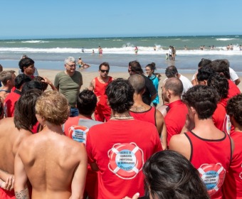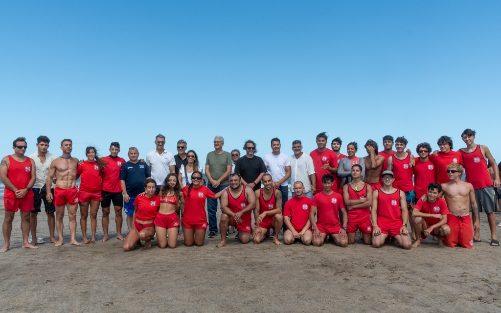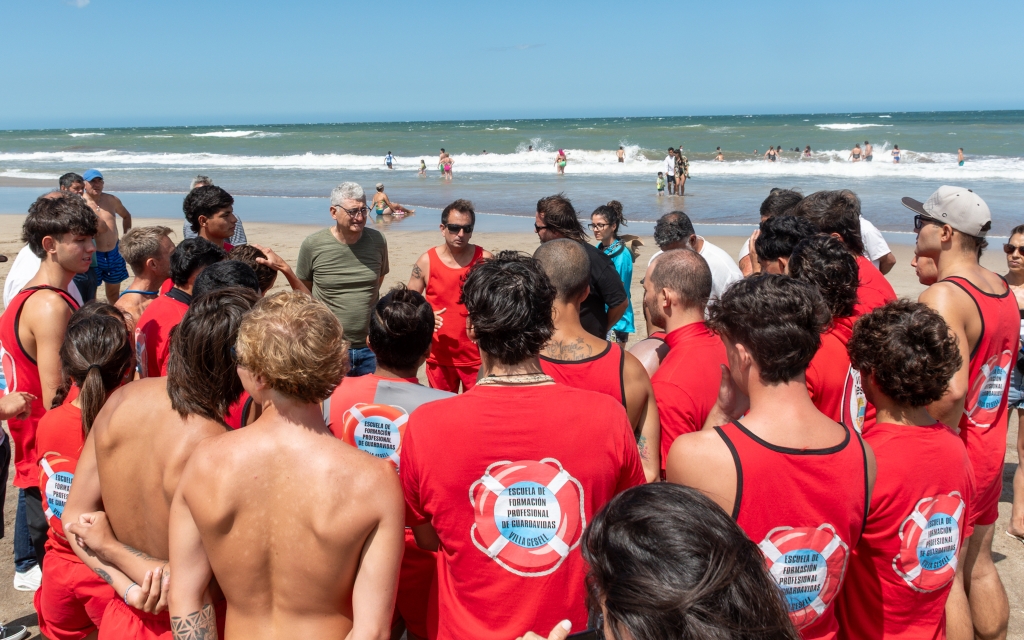 Posteriormente, los funcionarios provinciales, junto al jefe comunal, acompañaron a las y los aspirantes a guardavidas, quienes, en el marco de las prácticas y la preparación que realizan durante la carrera, llevaron adelante un simulacro de salvataje.