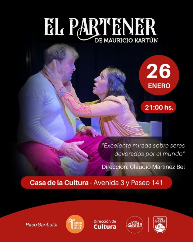 Aclamada por la crítica y ovacionada por el público, “El Partener” es una comedia grotesca criolla y tragicómica, escrita por Mauricio Kartun y dirigida por Claudio Martínez Bel. La función se realizará hoy a las 21 h, con puntualidad, en la Casa de la Cultura de Villa Gesell, ubicada en Avenida 3 y Paseo 141, con entradas a precios accesibles.