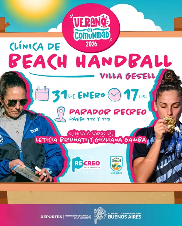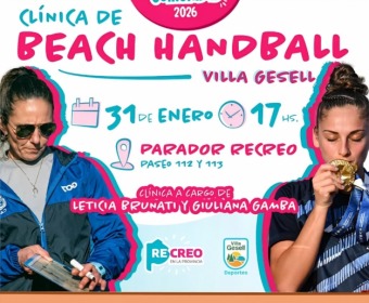 En el marco del programa “Verano en Comunidad” se realizará una clínica de Beach Handball con la participación de dos reconocidas deportistas: Leticia Brunati y Giuliana Gamba. La cita es el sábado 31 de enero, a las 17 h, en el Parador Recreo de playa entre 112 y 113.