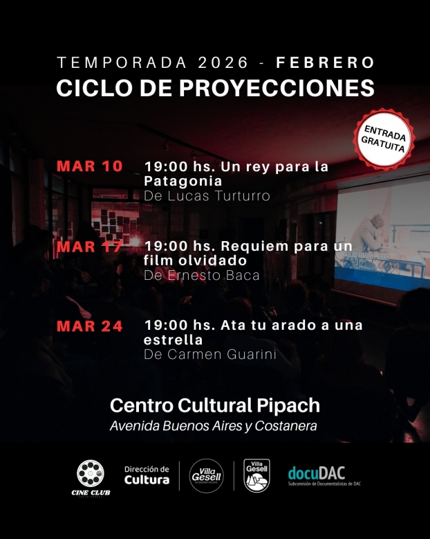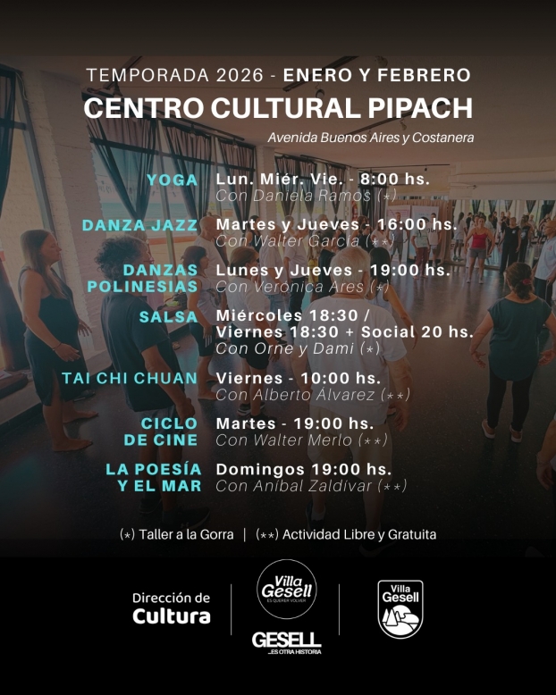 La Secretaría de Turismo, Cultura, Educación y Deportes continúa brindando una amplia oferta de actividades culturales y recreativas para toda la comunidad. En este marco, el Pipach, ubicado en Buenos Aires y Playa, renueva su ciclo de proyecciones con entrada libre y gratuita y da continuidad a sus talleres, que incluyen danza, yoga, tai chi chuan y otras propuestas abiertas al público.