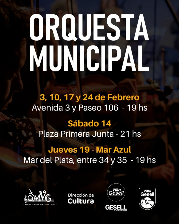 Los días 3, 10, 17 y 24 de febrero, la Orquesta se presentará en Avenida 3 y Paseo 106, a las 19 h.