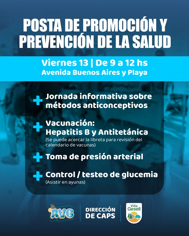 Mañana viernes, de 9 a 12 h, se llevará adelante una jornada articulada entre la Dirección de Atención Primaria de la Salud y la RVG en Avenida Buenos Aires y Playa.