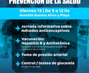 La actividad contará con postas informativas sobre métodos anticonceptivos y vacunación (hepatitis B y antitetánica). Se podrá acercar la libreta sanitaria para la revisión del calendario de vacunas.