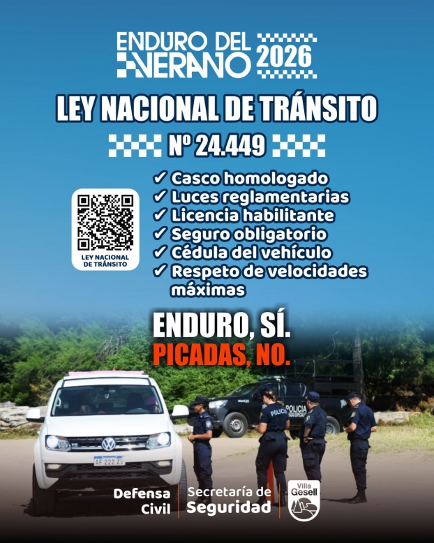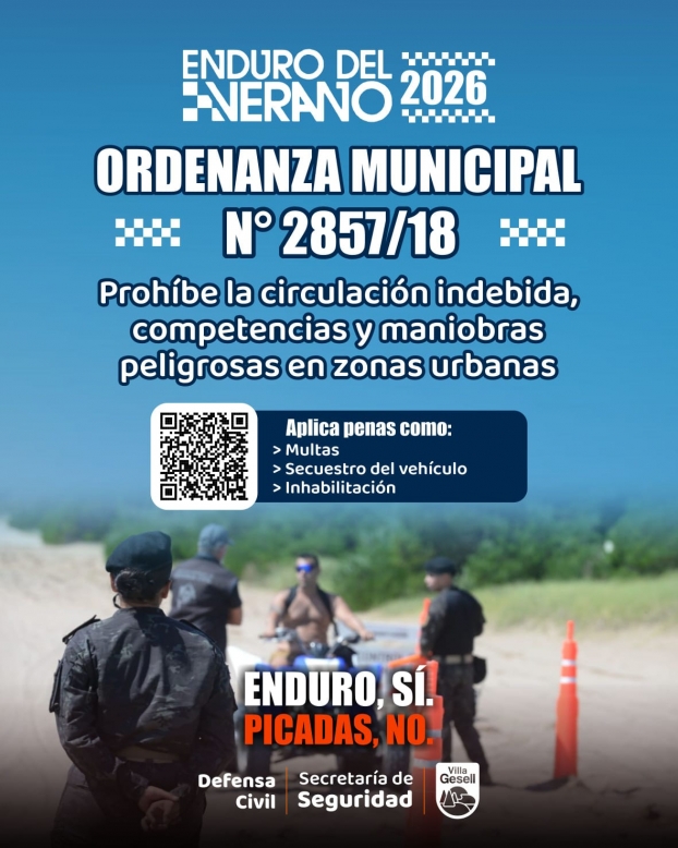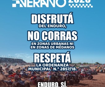 En este sentido, le pedimos a nuestros vecinos y visitantes, colaboración con el desarrollo ordenado del evento, respetando las normas de tránsito, las zonas habilitadas para circular y las indicaciones del personal de control. El compromiso individual resulta fundamental para que el Enduro del Verano se viva como una verdadera fiesta del deporte, priorizando el cuidado de la vida, el ambiente y la convivencia en los espacios públicos.