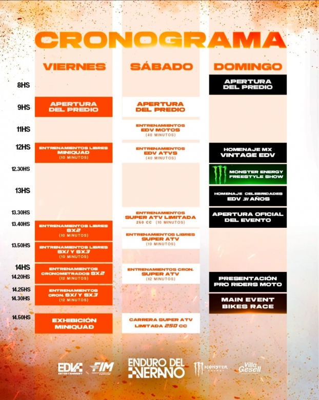 12.00 hs. Entrenamientos EDV ATV (40 minutos).