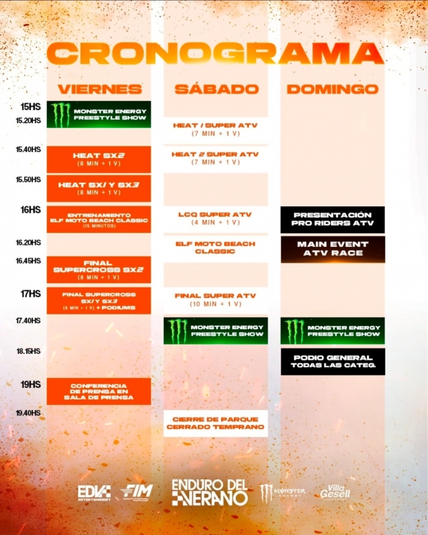 17.00 hs. Final Supercross SX1 y SX3 (8 min + 1 vuelta) y podios.