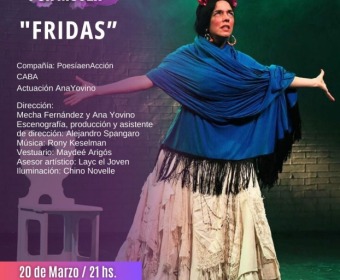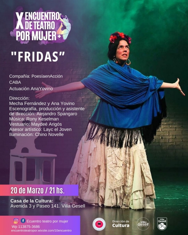 En este sentido se presentará “Fridas”, a las 21:00 horas, en la Casa de la Cultura y Auditorio Municipal, ubicada en Avenida 3 y Paseo 141. Las entradas generales tienen un valor de $10.000; habrá promoción anticipada 2x1 en boletería, y jubilados y estudiantes contarán con un 20% de descuento. Las mismas podrán adquirirse en boletería de 16:00 a 21:00 horas.