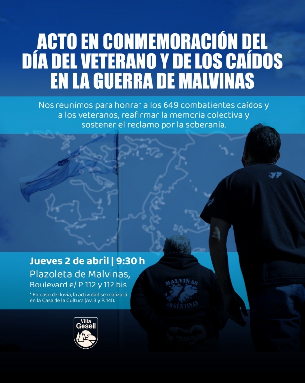 En el marco del Día del Veterano y de los Caídos en la Guerra de Malvinas, que se conmemora cada 2 de abril en todo el país, la Municipalidad de Villa Gesell invita a instituciones y a la comunidad en general a participar del acto oficial.