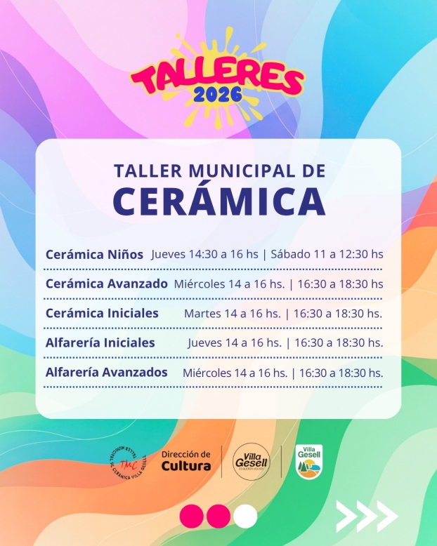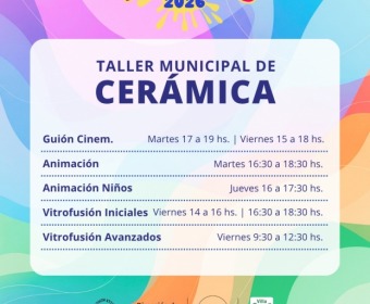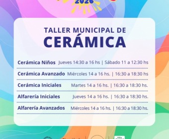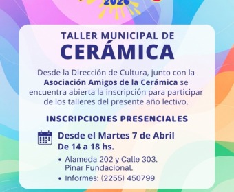 La Dirección de Cultura, junto a la Asociación Amigos de la Cerámica, informa que a partir del martes 7 de abril se encuentran abiertas las inscripciones para participar de los talleres correspondientes al ciclo lectivo 2026.