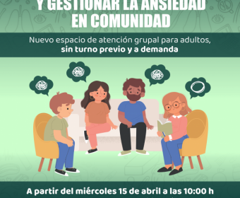 La Dirección de Atención Primaria de la Salud informa a la comunidad la apertura de un nuevo espacio de atención grupal destinado a personas adultas para la gestión de la ansiedad. El mismo funcionará sin turno previo y a demanda.