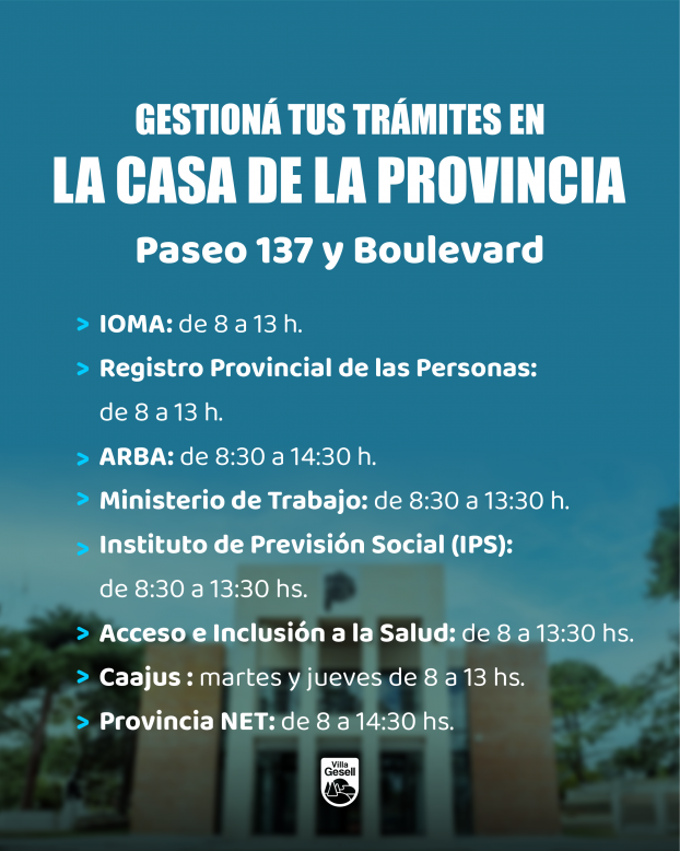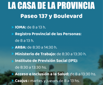 A continuación, se detallan los días y horarios de atención de cada organismo provincial: